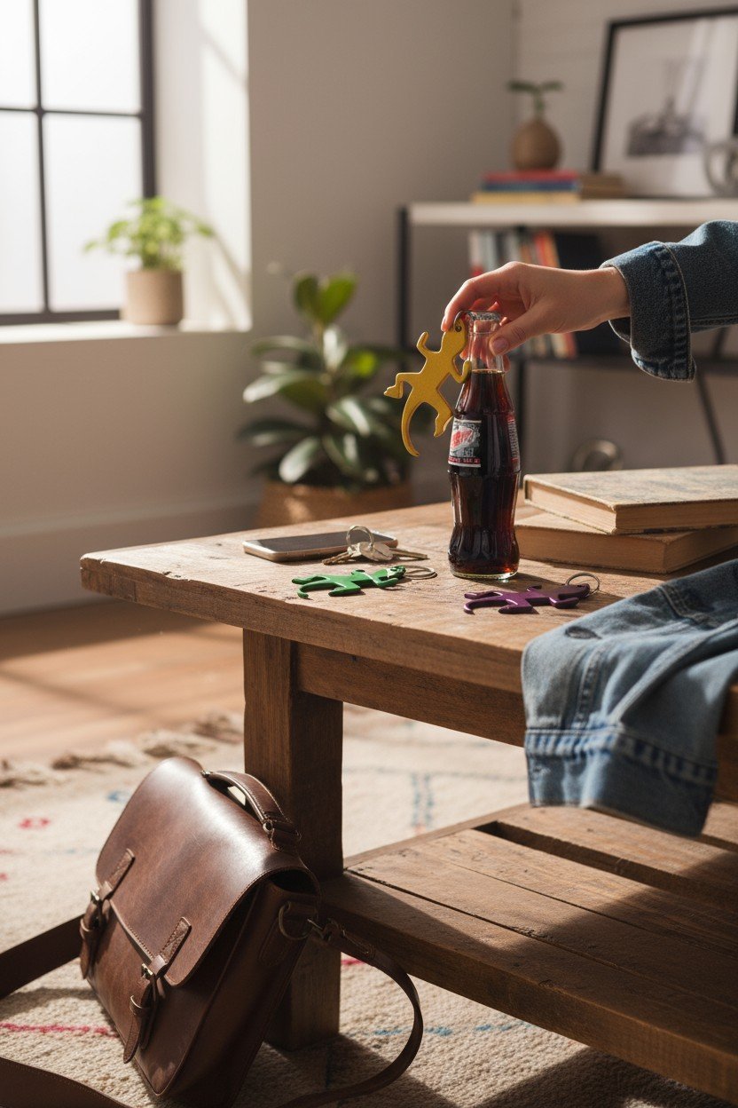 Apri una bottiglia e fai sorridere chiunque: il portachiavi apribottiglie Lizard è talmente utile che sembra magia da tasca.