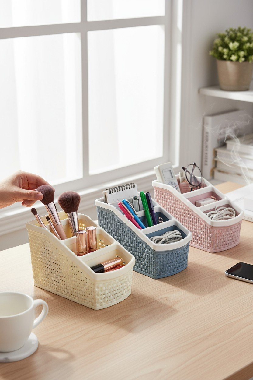 Il CONTENITORE CON SCOMPARTI è la soluzione smart per chi ama l'ordine senza rinunciare al divertimento. Perfetto come regalo o come alleato quotidiano, trasforma qualsiasi spazio in un mini studio di organizzazione.
