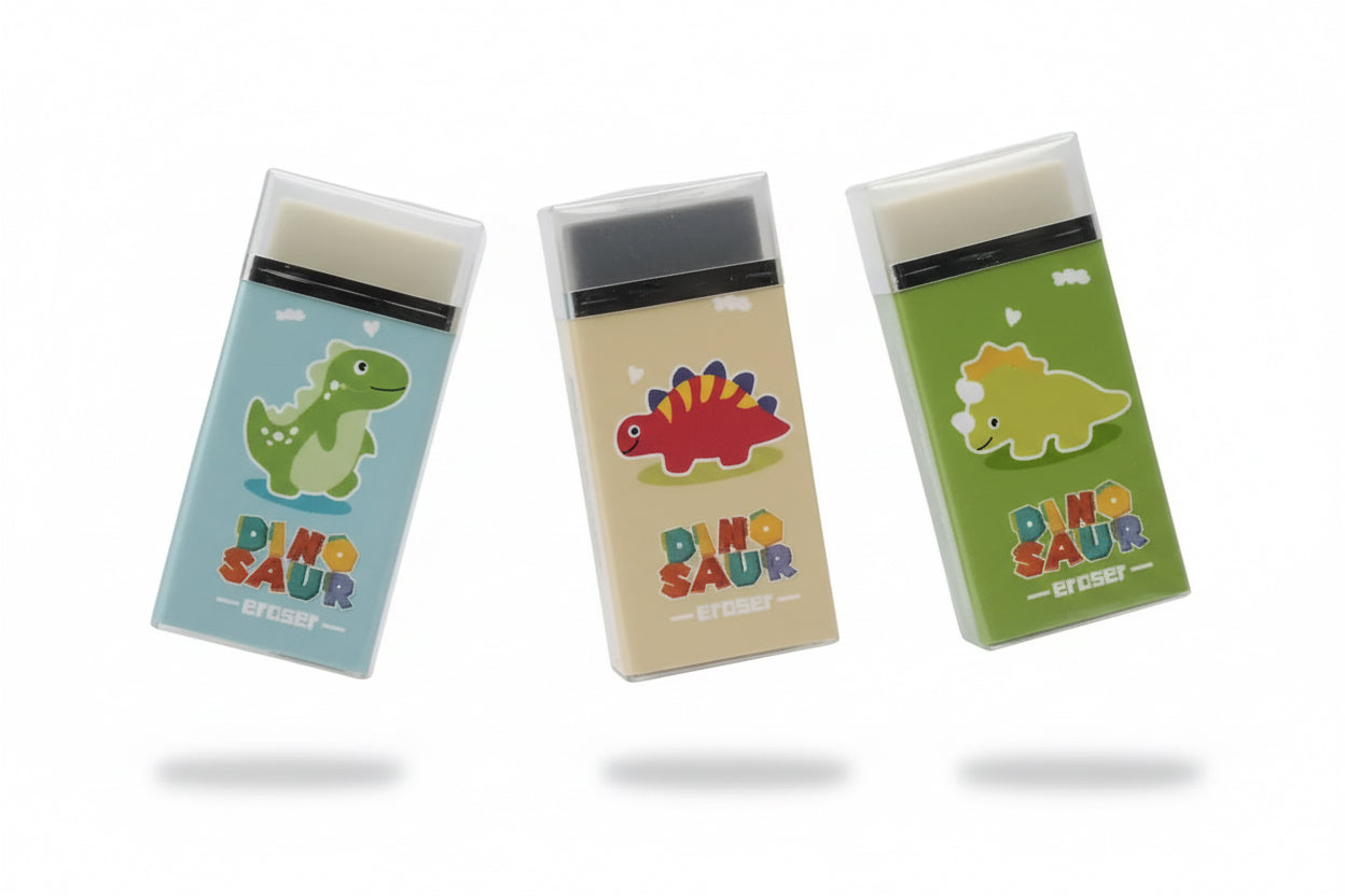 - Design Dino divertente: una gomma dinosauro che porta un sorriso e rende la cancelleria più interessante.