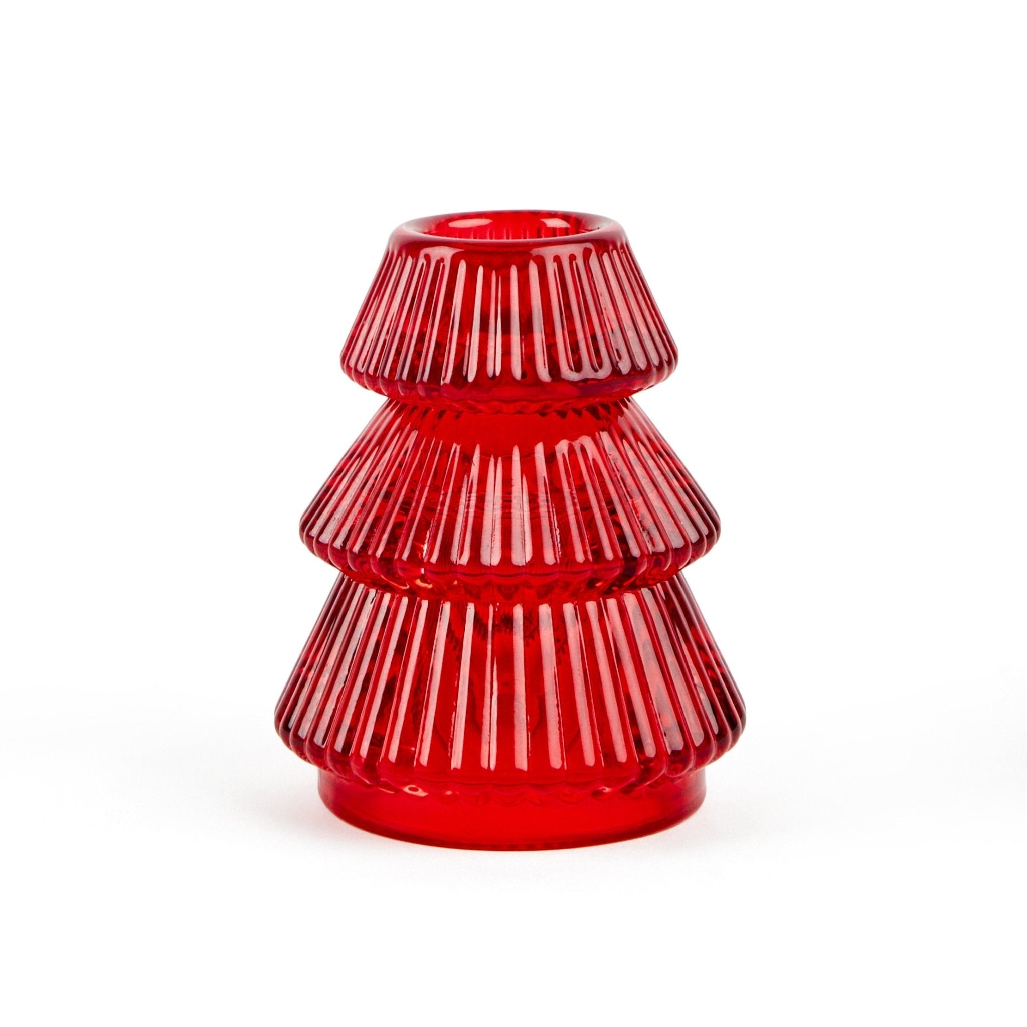 Portacandela in vetro a tema albero rosso: una piccola scintilla di magia natalizia che trasforma qualsiasi tavola o angolo in un luogo accogliente. Leggero, elegante e pronto a brillare nelle tue feste.